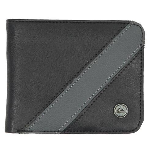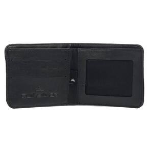 Carteira QuikSilver feita em tecido manta de PVC e Poliéster, cantos arredondados, aplicação de placa abaixo do recorte em contraste frontal, abertura para cartões e telinha no interno, aplicação de alta frequência da marca no interno e aplicação de etiqueta bandeira no interno da carteira.
