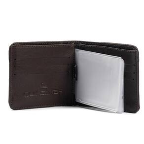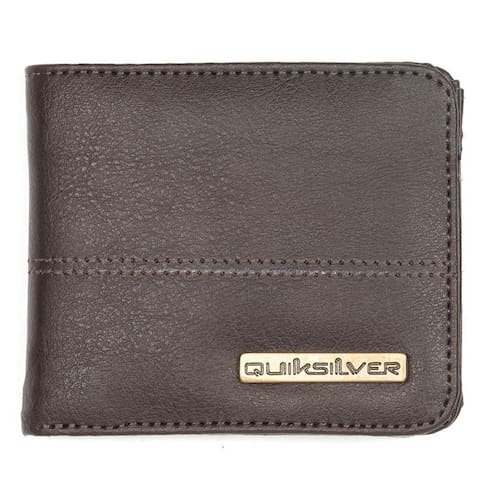 Carteira QuikSilver feita em tecido manta de PVC e Poliéster, cantos arredondados, aplicação de placa no canto do painel frontal, costuras contrastantes no recorte centralizado por toda a extensão, abertura para cartões em ambos os lados, folhas de plásticos removíveis no interno, aplicação de alta frequência da marca no interno e aplicação de etiqueta bandeira no interno da carteira.