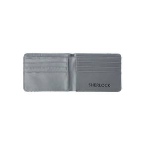 - A elegante carteira cinza diz “Get Sherlocked”!