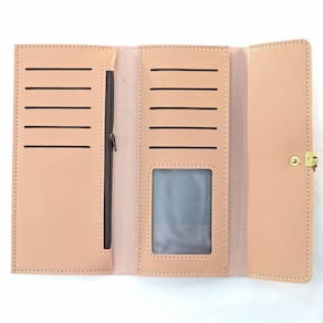 Confeccionada com o luxuoso material em PU, esta carteira não só agrega um toque sofisticado ao seu visual, mas também é resistente e durável, garantindo que você a desfrute por muitos e muitos momentos.