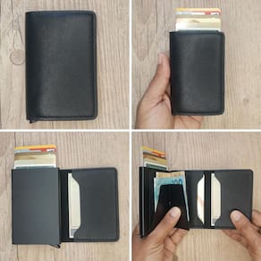 A carteira comporta até 6 cartões com proteção RFID e possui espaço para mais 2 cartões sem essa proteção. Mantenha suas informações pessoais seguras e evite fraudes.