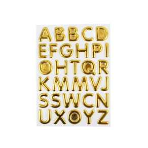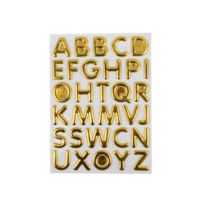 Cartela Adesivos Letras Alfabetos Dourado Cartela com adesivos formato de letras do alfabeto na cor dourada. São diversos adesivos individuais que podem ser colados em separado. Material: plástico e papel Informação Adicional Peso (Kg): 0.03 Altura (cm): 30.00 Largura (cm): 18.00 Comprimento (cm): 0.50 Certificado: Não se aplica
