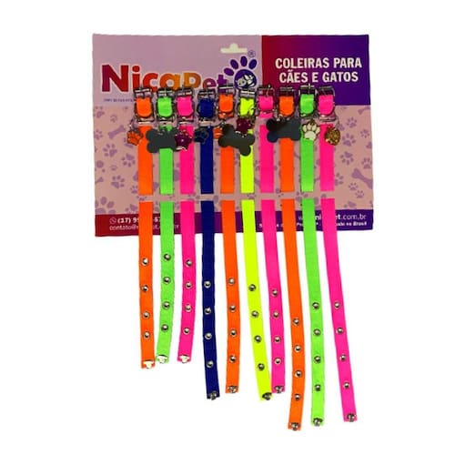- 10 coleiras neon; - tecido seda liso; - com pingentes; - com uma ótima qualidade e bem costurado; - para cães de pequeno a médio porte; - cores para o verão; - com 3 tamanhos: 0; 1; 3