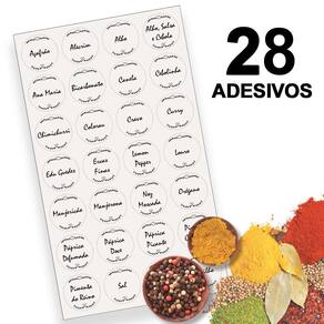 Feito em vinil autoadesivado de altíssima qualidade, este kit com 28 etiquetas é resistente à água e se encaixa perfeitamente bem na maioria dos potes de porta temperos vendidos no mercado. Cada etiqueta tem 38 mm de diâmetro, o que permite acomodar bem nas tampas dos potes e permite também uma visualização perfeita do rótulo.