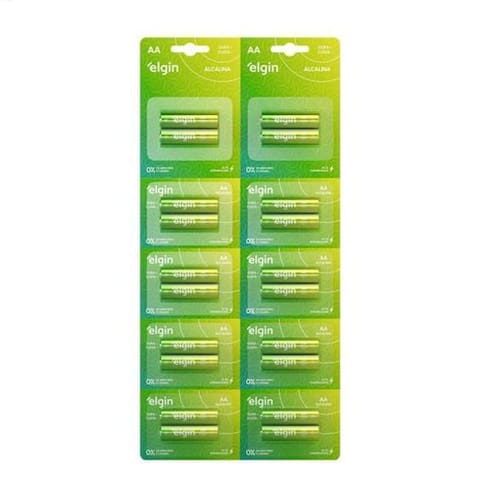 Cartelão de pilhas alcalinas, 10 blisters com 2 pilhas aa elgin Indicadas para equipamentos que requerem descargas de energia rápidas e fortes, como brinquedos, câmeras fotográficas digitais, mp3 players, lanternas, as pilhas e baterias elgin energy apresentam ótima relação custo/benefício, garantindo alta durabilidade; Aprovadas pelo inmetro colaboram para a preservação do meio ambiente, pois não apresentam metais pesados em sua composição com 0% de cádmio e mercúrio; Aprovadas pelo inmetro: As pilhas elgin energy são testadas periodicamente por laboratórios credenciados pelo inmetro, para garantir a qualidade e conformidade com a resolução conama 401; Ecologicamente corretas: As pilhas elgin energy tem 0% de mercúrio e cadmio em sua composição, coloborando para a preservação do meio ambiente; Dura + custa -: As pilhas elgin energy foram aprovadas em todos os quesitos e têm ótima relação custo/benefício. Economize e tenha pilhas de qualidade; Melhor custo x benefício: Em testes realizados pelo inmetro foram avaliadas 11 marcas de pilhas do mercado. O custo por hora útil das pilhas elgin energy apresentou excelentes resultados; Dados técnicos: Validade: 5 anos; 3 meses; Volts 1,5v; Ean: 7908412508868
