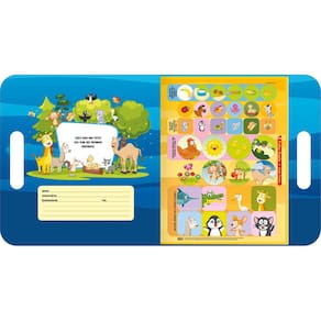 A maleta de atividades "Animais" tem como objetivo trabalhar a interatividade das crianças com os bichinhos, oferecer consciência ambiental, desenvolver o companheirismo e responsabilidades por meio de brincadeiras. O produto, em tamanho 19 x 25 cm, tem 8 folhas e cartela de adesivos interativa com as atividades.