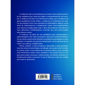 A violência não é um fenômeno recente e tem estado presente no cotidiano por meio da mídia e constantemente nas escolas. A violência escolar é um fenômeno antigo que configura um grave problema social. Antes, a violência na instituição de ensino era tratada como uma questão de indisciplina, depois como sinal de delinquência e atualmente como uma problemática com diversas implicações sob a ótica das práticas educativas e suas diferentes manifestações, assunto que tem preocupado educadores e pais. O bullying, vai além de um problema que compromete a aprendizagem, tem sido associado a diversos comprometimentos do desenvolvimento infantil, a problemas psicológicos, a patologias e tragédias de grandes proporções como ataques às escolas e aos alunos, infelizmente. Nesse sentido, o tema bullying é discutido e atrai profissionais das áreas de psicologia, sociologia, educação e até do direito. Sendo assim, é necessário ter-se clareza sobre o que constitui este fenômeno, assim como também é necessário que os responsáveis pelas crianças e adolescentes envolvidos tenham entendimento sobre o assunto. O que é feito por meio da cartilha que aqui se apresenta.