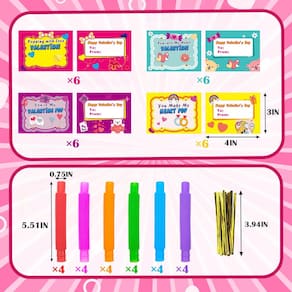 Cartões de presente de Dia dos Namorados Kannove para crianças em sala de aula, pacote com 24 tubos pop Fidget Toys com cartões de troca de classe de dia dos namorados para crianças pequenas, lembrancinhas escolares engraçadas e guloseimas para meninos e meninas - 24 cartões de dia dos namorados com brinquedos — Este conjunto inclui 24 tubos pop com cartões comemorativos que permitem que você escreva nomes neles. - Presentes de dia dos namorados para crianças em sala de aula - Perfeitos para a aula de São Valentim, troque presentes para seus filhos e dê aos colegas de classe no Dia dos Namorados. - Lembrancinhas para festas de dia dos namorados — Excelentes e divertidas sacolas de guloseimas, prêmios e guloseimas para festas infantis na escola ou em aniversários. - Fun Fidget Toys - Estique, gire e retraia os tubos para criar um ruído agradável, trazendo muitas risadas. Possibilidades infinitas de dobrá-los em diferentes formas, como pulseiras e letras. - Adequado para várias faixas etárias - Ideal para pré-escola, jardim de infância, creche, meninos, meninas e até crianças mais velhas e adultos que adoram brincar com eles para se divertir.