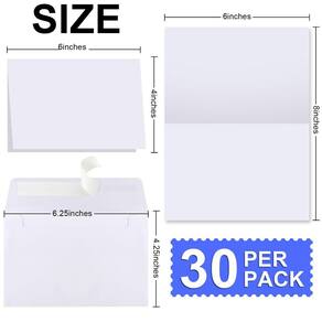 Qualidade profissional: os cartões e envelopes em branco são feitos de papel adesivo duplo, papel cartão branco 4* 6 completamente em branco e envelope A4. Os cartões e envelopes em branco têm um total de 60 acessórios, incluindo 30 envelopes e 30 cartões. Tamanho do envelope A4:4,25 x 6,25 polegadas, tamanho do cartão dobrável: 4 x 6 polegadas. Nossos envelopes são perfeitamente adequados para atolamentos de papel.