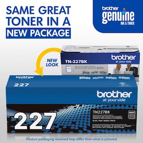 Brother Cartucho de toner genuíno TN227, TN227BK, alto rendimento, toner preto de substituição, rendimento de página até 3.000 páginas, TN227BK, Amazon Dash disponível - Oferece qualidade superior de impressão a laser: o cartucho de toner preto de alto rendimento Brother genuíno TN-227BK proporciona uma saída de qualidade a laser consistente, nítida e profissional na qual você pode confiar para até 3.000 páginas. (1) - Engenharia inteligente: Projetado de forma inteligente como parte de um sistema de impressão completo para funcionar perfeitamente com sua impressora Brother para oferecer qualidade de impressora a laser. - Impressões afiadas que duram: o toner genuíno Brother produz resultados de qualidade superior a laser que resistem ao teste do tempo. - Responsável pelo meio ambiente: Brother Brother oferece uma maneira ambientalmente responsável de descartar cartuchos genuínos da Brother Visite o site do fabricante para obter mais informações. - Para uso com: Use com impressora Brother e modelos multifuncionais: HL-L3210CW, HL-L3230CDW, HL-L3270CDW, HL-L3290CDW, MFC-L3710CW, MFC-L3750CDW e MFC-L3770CDW. - CARTUCHO DE REPOSIÇÃO DE TRAÇO AMAZON - Após a ativação com sua impressora Brother elegível para Dash, os cartuchos de substituição TN-227BK podem ser pedidos automaticamente através do Amazon Dash Replenishment e enviados diretamente para sua porta.