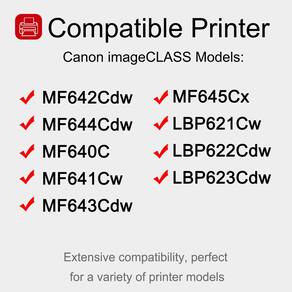 - Compatibilidade: Canon imageCLASS MF642Cdw, MF644Cdw, MF640C, MF641Cw, MF643Cdw, MF645Cx; Canon imageCLASS LBP621Cw, LBP622Cdw, LBP623Cdw