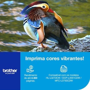 Utilizado nos equipamentos: HLL3210CW, DCPL3551CDW, MFCL3750CDW. Possui rendimento médio de 2.300 páginas, considerando 5% de cobertura no papel A4. Marca: Brother