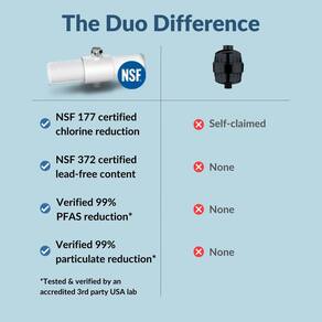Bem-vindo ao passo zero da sua rotina de autocuidado! O filtro de chuveiro Weddell Duo é a melhor solução para chuveiros mais limpos e saudáveis. Certificado NSF e verificado para reduzir PFAS e partículas prejudiciais, o Weddell Duo melhora sua experiência de banho enquanto promove uma melhor saúde da pele e do cabelo. Seu sistema de cartucho duplo com patente pendente permite que você monitore facilmente o processo de filtragem, com filtros transparentes que mostram quando é hora de uma substituição. Projetado para instalação sem ferramentas, o Weddell Duo é compatível com todos os chuveiros padrão e proporciona fluxo de água ideal sem comprometer o desempenho. Com filtros de longa duração que fornecem até 8.000 galões de água limpa, o Weddell Duo garante que cada chuveiro seja um passo para melhorar o bem-estar. - Bem-vindo ao passo zero da sua rotina de autocuidado! O Weddell Duo combina carbono ativado patenteado e camadas condensadas de vários estágios para remover efetivamente cloro, PFAS, partículas e odores desagradáveis da sua água. O resultado? Água com sensação e cheiro mais limpos, deixando sua pele, couro cabeludo e cabelo visivelmente mais saudáveis. - Por que a água filtrada é importante: a água não filtrada pode conter contaminantes prejudiciais como cloro, PFAS e microplásticos, que podem levar a problemas de secura da pele, irritação e couro cabeludo. A exposição a longo prazo a esses poluentes tem sido associada a potenciais riscos à saúde, incluindo perturbações hormonais e condições de pele. Ao filtrá-los, o Weddell Duo garante que você experimente uma água mais limpa e saudável para uma diferença notável em sua pele, cabelo e bem-estar geral. - #1 em desempenho certificado NSF - Weddell Duo é o filtro de chuveiro certificado NSF nº 1 para desempenho, com base nas taxas de fluxo e capacidade entre os filtros de chuveiro de montagem na parede de 2024. Weddell Duo é o único filtro de chuveiro certificado pela NSF para reduzir o cloro disponível gratuitamente, mantendo uma redução verificada de PFAS e partículas. - Fácil instalação e ampla compatibilidade - Weddell Duo é compatível com vários chuveiros — chuva, fixo ou portátil. A instalação é rápida e sem ferramentas! Basta apertar o conector giratório e reconectar o chuveiro em minutos. É perfeito para casas, dormitórios, viagens e animais de estimação, reduzindo efetivamente a secura do cabelo, irritação da pele e odores desagradáveis. - Substituição simples e econômica - ao contrário da maioria dos filtros que são difíceis de substituir, os filtros Weddell Duo são montados lateralmente, permitindo fácil monitoramento de sua condição. Observe o processo de filtragem através dos cartuchos duplos transparentes e, em seguida, gire para remover e substituir quando necessário. Cada conjunto de filtros dura até 8.000 galões, oferecendo uma solução econômica para água limpa a longo prazo.