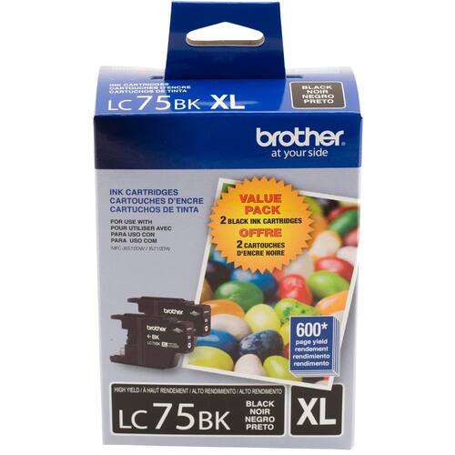 Brother Impressora LC752PKS Pacote com 2 cartuchos de tinta LC-75BK - Embalagem de varejo, preta - cartucho de tinta preta - cartuchos de alto rendimento - aprox. Rendimento de 600 páginas por cartucho (de acordo com iso/iec 24711) - tinta Brother genuína Autêntico - Tipo de scanner: cartão de visita