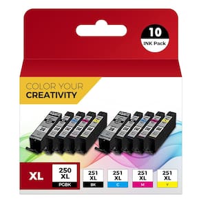 Descrição do produto: Upsek PGI-250XL CLI-251XL Pacote econômico de 10 cores compatível com 250 251 cartuchos de tinta para uso com PIXMA MX922 MG5420 MG5520 MG5522 MG6320 MG6620 iP7220 (2PGBK, 2Black, 2Cyan, 2Magenta, 2Magenta, 2 Amarelo) Compatível com modelos de impressora Pixma MG5420, MG5422, MG5500, MG5520, MG5522, MG5620, MG5622, MG6320, MG6420, MG6620, MG7120, MG7520, MX722, MX920, MX922, IP7220. , IP872 0, Impressora jato de tinta IX6820. - Compatibilidade da impressora: Pixma Mg5420, Mg5422, Mg5500, Mg5520, Mg5522, Mg5620, Mg5622, Mg6320, Mg6420, Mg6620, Mg7120, Mg7520, Mx7220, Mx7220. , Mx92 Impressora 0, Mx922, Ip7220, Ip8720, Ix6820. - Lista de embalagem: 2 x 250XL PGBK, 2 x 251XL Preto, 2 x 251XL Ciano, 2 x 251XL Magenta, 2 x 251XL Amarelo, 1 x Guia do Usuário. - Rendimento de páginas: 250 XL PGBK tem 550 páginas, 251 XL cor é 350 páginas por cartucho, 251 XL preto é 300 páginas por cartucho (com 5% de cobertura). - Qualidade: Os cartuchos de tinta PGI-250XL CLI-251XL podem ser identificados instantaneamente por suas impressoras e funcionam perfeitamente, tornando documentos diários, relatórios, cartas, gráficos e fotos muito claros e brilhantes. - Dica: lembre-se de que este item não foi criado ou vendido pela Canon.