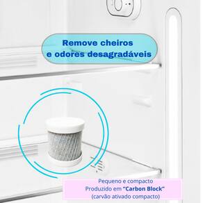 Acessório pequeno e prático! Auxilia na remoção de odores desagradáveis típicos de geladeiras, freezers e refrigeradores. Indicado para o interior de geladeiras, freezers e frigobares, no qual remove odores por meio de adsorção.