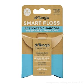 Fio dental vegano de carvão ativado DrTung — Fio dental natural, suave para as gengivas, expande e alonga, fio dental sem BPA — sabor de capim-limão (pacote com 1)