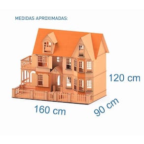 Características: Mansão Stefannie: Tamanho total montado: 1,60m x 90 cm x 1,20 m largura x comprimento x altura Peso: 30 kg aprox Sem pintura mdf natural Imagens ilustrativas, não acompanha móveis. Não indicado a exposiçao a Luz intensa e umidade. Uso em ambientes internos. Produto não perecível.