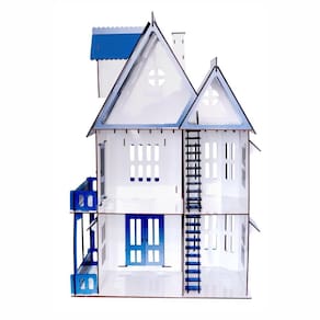 Confeccionada em mdf de 3 mm,a casinha de bonecas é composta por diversas peças,as quais se encaixam sutilmente devido a precisão de corte dos mesmos. Não acompanha móveis.
