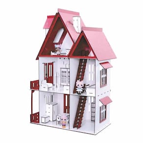 Confeccionada em mdf de 3 mm,a casinha de bonecas é composta por diversas peças,as quais se encaixam sutilmente devido a precisão de corte dos mesmos. Não acompanha móveis.
