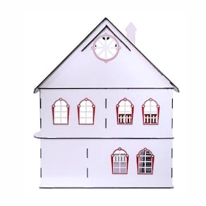 Confeccionada em mdf de 3 mm,a casinha de bonecas é composta por diversas peças,as quais se encaixam sutilmente devido a precisão de corte dos mesmos. Não acompanha móveis.