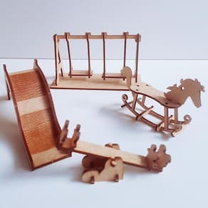 Kit contém: 1 casa de bonecas de madeira tipo MDF Crú com Varanda