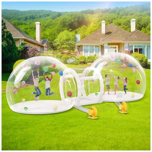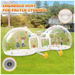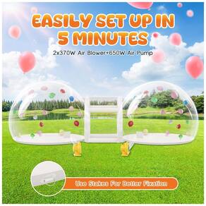Criador de Atmosfera de Festa. A Casa de Balão de Bolhas é o criador definitivo de atmosfera de festa. Seu design vibrante e interior espaçoso criam um ambiente envolvente e divertido que as crianças adoram. Perfeito para aniversários, reuniões familiares e eventos ao ar livre. Material de PVC de Grau Comercial. Feita de resistente material de PVC de 0,10mm de alta qualidade comercial, esta casa de bolha inflável garante durabilidade e segurança duradouras. O material de alta qualidade resiste ao desgaste, proporcionando desempenho confiável. Uso Versátil. Esta tenda inflável oferece uma ampla variedade de aplicações. Seja em uma área de lazer no quintal, como atração em festivais ou decoração de eventos internos, a tenda inflável se adapta a diversos ambientes. Montagem Rápida e Fácil. Equipada com sopradores de ar de 750W e 650W, a tenda inflável pode ser totalmente inflada em 5 minutos. Montar esse domo de bolhas é muito fácil, permitindo que você aproveite mais tempo com seus convidados. Acessórios Completos Incluídos. Tudo o que você precisa está incluído na casa de bolhas. Desde o soprador até as estacas para o chão e balões, todos os acessórios necessários estão inclusos, garantindo uma experiência sem complicações.