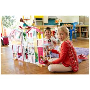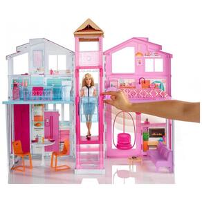 Três histórias de luxo de espaço de jogo fazem desta casa da Barbie o lar de todos os tipos de histórias divertidas Quatro quartos e um lounge na cobertura, todos com detalhes realistas, tornam a mais nova casa ultra deluxe da boneca Barbie. Viaje entre os andares no elegante elevador ativado por crianças quando a boneca Barbie vendida separadamente chega ao segundo andar, o telhado se abre para uma surpresa verdadeiramente divertida, completa com um guarda chuva colorido A cozinha e a sala ocupam o primeiro andar o banheiro e o quarto ficam no segundo há até um armário no andar de cima para a boneca Barbie pendurar suas roupas Uma cadeira de balanço contemporânea na sala se abre para que a boneca Barbie possa balançar dentro ou fora da casa. As peças de mobiliário apresentam design contemporâneo e incluem uma mesa e duas cadeiras, um sofá, uma mesa de centro, uma cama, uma banheira e a cadeira de baloiço. Acessórios adicionais como uma toalha, talheres para a cozinha e um tablet do tamanho de uma boneca aumentam as possibilidades de contar histórias. Organize móveis e acessórios de acordo com seu estilo e suas histórias Nível de habilidade Iniciante Marca: Não Informado