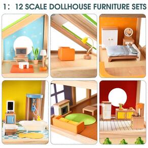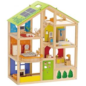 Uma clássica casa de bonecas de madeira de 3 andares que incentiva a imaginação com os amigos. CARACTERÍSTICAS DO QUARTO Esta casa de bonecas para crianças possui 6 quartos, incluindo quatro conjuntos de quarto principal, banheiro familiar, sala de mídia e cozinha TOTALMENTE MOBILIADO A casa possui móveis e eletrodomésticos exclusivos, fáceis de mover e organizados como você gosta DURABILIDADE Esta casa de bonecas de madeira para crianças tem construção em madeira maciça e acabamento em pintura segura para crianças PREMIADO Destinatário do Prêmio Oppenheim Toy Portfolio Platinum Seal 2011