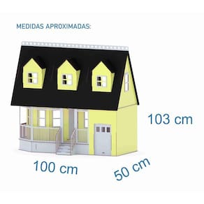 Confeccionada em mdf de 3 mm, a casinha de bonecas é composta por diversas peças, as quais se encaixam sutilmente devido a precisão de corte dos mesmos. Não acompanha móveis.