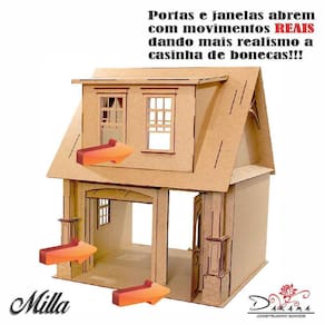 Casa de bonecas modelo milla - daramaUm dos nossos lançamentos de 2022, a casa de bonecas milla, tras um conceito mais compacto para casinhas de escala para bonecas de 30 cm de altura, ideal para pequenos espaços.A casa modelo milla possui dimensão total de 60 cm de comprimentos por 56 centimetros de profundidade, e 70 centimetros de altura, comportando bonecas de até 30 cm de altura como as da linha barbie e similares.Ela é composta por 2 cômodos amplos, sendo ambos de 35 cm de altura. Possui ainda uma varanda na parte frontal com espaçamento de 10 cm, ideal para que sua boneca possa circular tranquilamente na parte interna.As janelas e portas deste modelo são móveis, ou seja, as janelas e as portinhas abrem e fecham, dando mais realismo ao produto.Todo o produto é enviado desmontado, e para sua montagem disponibilizamos um manual ilustrativo. A montagem é feita através de encaixes e colagem precisa seguir o tutorial de montagem sendo um desafio para toda a família a construção desta linda casinha.A casinha milla está sendo comercializada em diversas versões, tanto coloridas, como em mdf natural.Características:Medidas: 60 x 56 x 70 centimetros largura x comprimento x altura Compatibilidade: bonecas de 30cm de altura tipo barbie e similares Obs imagens reais do produto.Obs: nao acompanha móveis,Homologação Inmetro: IP-BRI-0900/2021-16 Marca: Indústria Fenix