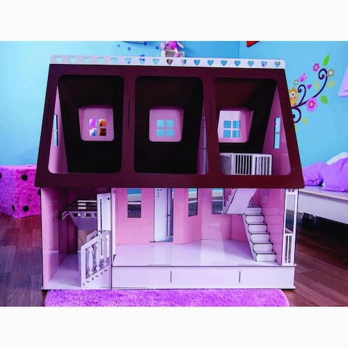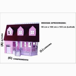 Confeccionada em mdf de 3 mm,a casinha de bonecas é composta por diversas peças,as quais se encaixam sutilmente devido a precisão de corte dos mesmos. Não acompanha móveis.