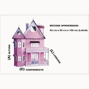 Confeccionada em mdf de 3 mm,a casinha de bonecas é composta por diversas peças,as quais se encaixam sutilmente devido a precisão de corte dos mesmos. Não acompanha móveis.