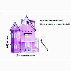 Casinha de bonecas escala barbie modelo Emily estilo princesaConfeccionada em mdf de 3 mm,a casinha de bonecas é composta por diversas peças,as quais se encaixam sutilmente devido a precisão de corte dos mesmos. Não acompanha móveis.Dimensões aprox :60 x 90 x 120 cm largura x comprimento x altura Neste produto, há necessidade de colagem. O produto é montado através de feixes de encaixes, e necessariamente precisa ser colado com cola instantânea tipo superbonder, ou cascorez, cola branca ou qualquer cola indicada para mdf. Não indicamos cola quente.Material de fabricação: mdf de reflorestamento 3mm tipo pinus, cortado através da tecnologia de corte a laser.- mais leve e prático de ser locomovido.- maior praticidade na montagem.- maior durabilidade.- maior precisão nos encaixes.Enviamos o produto desmontado e embalado em plástico bolha,garantindo que chegue em perfeito estado em sua residência.Certificado: CE-BRI/IQB-000280 - NM300/2002 - 0CP 0006Todas as informações divulgadas são de responsabilidade do fabricante/fornecedor.Imagens meramente ilustrativas.Observe atentamente a idade recomendada para o brinquedo. Pode conter partes pequenas que podem ser engolidas e perigosas.Indicado para crianças à partir de 5 anos. Produto artesanal.Características do produto- tamanho: 60 x 90 x 120 cm- espessura do material: mdf3mm com pintura- compatibilidade: bonecas tipo barbie
