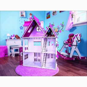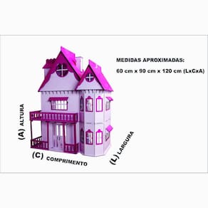 Confeccionada em mdf de 3 mm,a casinha de bonecas é composta por diversas peças,as quais se encaixam sutilmente devido a precisão de corte dos mesmos. Não acompanha móveis.
