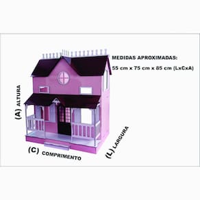 Confeccionada em mdf de 3 mm,a casinha de bonecas é composta por diversas peças,as quais se encaixam sutilmente devido a precisão de corte dos mesmos. Não acompanha móveis.
