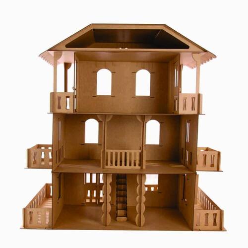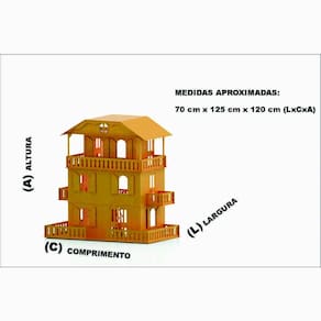 Confeccionada em mdf de 3 mm,a casinha de bonecas é composta por diversas peças,as quais se encaixam sutilmente devido a precisão de corte dos mesmos. Não acompanha móveis.