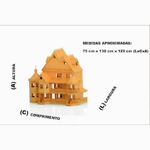 Confeccionada em mdf de 3 mm,a casinha de bonecas é composta por diversas peças,as quais se encaixam sutilmente devido a precisão de corte dos mesmos. Não acompanha móveis.
