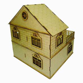 Confeccionada em mdf de 3 mm,a casinha de bonecas é composta por diversas peças,as quais se encaixam sutilmente devido a precisão de corte dos mesmos. Não acompanha móveis.