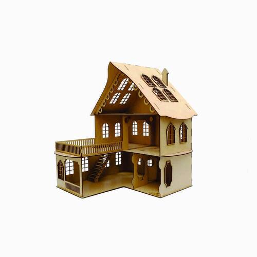 Confeccionada em mdf de 3 mm,a casinha de bonecas é composta por diversas peças,as quais se encaixam sutilmente devido a precisão de corte dos mesmos. Não acompanha móveis.