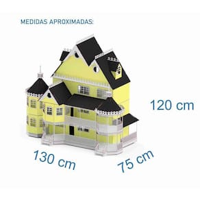 Confeccionada em mdf de 3 mm,a casinha é composta por diversas peças, as quais se encaixam sutilmente devido a precisão de corte dos mesmos. Não acompanha móveis.