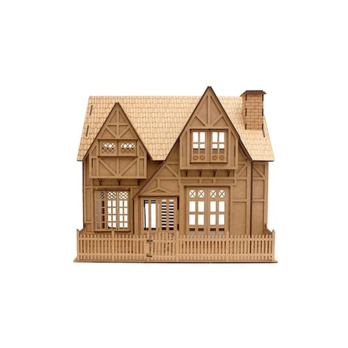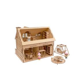 Confeccionada em mdf de 3 mm, a casinha de bonecas é composta por diversas peças,as quais se encaixam sutilmente devido a precisão de corte dos mesmos. Não acompanha móveis.