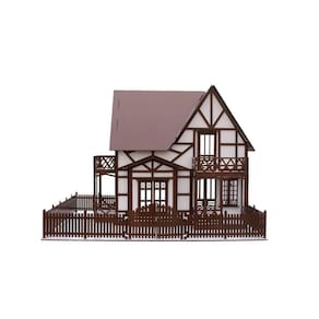 Confeccionada em mdf de 3 mm, a casinha de bonecas é composta por diversas peças,as quais se encaixam sutilmente devido a precisão de corte dos mesmos. Não acompanha móveis.