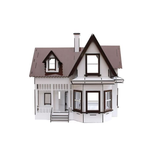 Confeccionada em mdf de 3 mm, a casinha de bonecas é composta por diversas peças,as quais se encaixam sutilmente devido a precisão de corte dos mesmos. Não acompanha móveis.