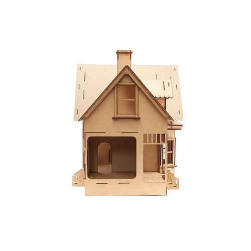 Confeccionada em mdf de 3 mm, a casinha de bonecas é composta por diversas peças,as quais se encaixam sutilmente devido a precisão de corte dos mesmos. Não acompanha móveis.