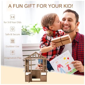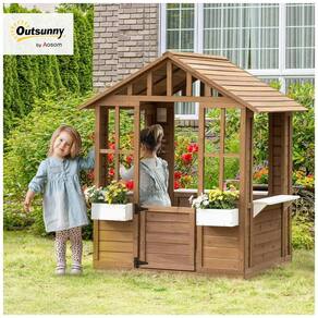 Proporcione às crianças um espaço divertido ao ar livre com esta casinha de brincar de madeira. Equipada com porta, janelas, balcão de serviço aberto e suportes para vasos de flores. A casinha possui um balcão de serviço aberto e três janelas para proporcionar circulação de ar e manter os pequenos confortáveis. A porta de meia altura permite que as crianças entrem e saiam rapidamente. Este presente divertido permite que seu filho brinque de faz de conta em uma casinha de brincar projetada para parecer uma casa natural! Ajude seu filho a expressar sua criatividade, desenvolver suas habilidades sociais e aprimorar a coordenação motora. Feita de madeira de pinheiro maciço, proporcionando uma estrutura resistente para uso diário. Adequada para uso externo. Dimensões totais: 119cm x 97cm x 137cm. Dimensões da porta: 36cm x 38cm. Adequado para crianças de 3 a 8 anos.