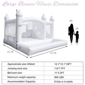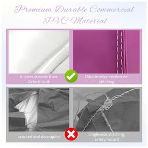 A Casa de Pulos Inflável Comercial Branca da Relunch oferece uma ampla área de pulos para adultos e crianças. Com capacidade para até 6 jogadores e suportando até 250kg, é ideal para festas e eventos. Feita de PVC durável de 0,45mm, certificado pelas normas de segurança CE e ASTM, garante resistência e segurança. A montagem é reforçada com costuras duplas e quádruplas, garantindo durabilidade. O potente soprador infla rapidamente a estrutura, que conta com zíperes para desinflar facilmente. Acompanha 100 balões decorativos.