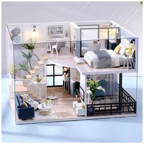 Detalhes Vem com madeira, papel, plástico e assim por diante. Inclua a luz LED e a tampa contra poeira e exclua a caixa de música. De acordo com os acessórios, você pode fazer vasos de plantas, cadeiras, mesas e assim por diante. Faça passo a passo, acredito que o resultado vai te deixar feliz. Não inclui baterias e cola devido à política alfandegária. Você precisa prepará los.
