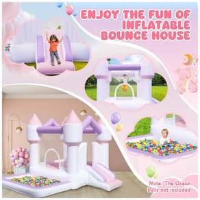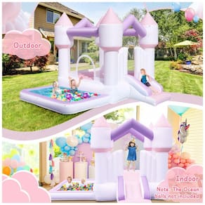 DIVIRTA-SE! Nossa casa inflável oferece área de pulo, tobogã e até uma piscina de bolinhas ao lado. Além disso, incluímos 100 balões para decoração ou entretenimento das crianças. Proporciona mais momentos de diversão e conexão com os pequenos. Garanta momentos de qualidade com seus filhos. SEGURANÇA E QUALIDADE: Fabricada com tecido Oxford 840D 420D inodoro, à prova d'água e resistente a rasgos. A área de pulo é cercada por uma parede de tela para um ambiente seguro. Pode ficar tranquilo que seus filhos poderão pular livremente e com segurança. INFLAÇÃO RÁPIDA E PORTABILIDADE: Acompanha inflador que enche em poucos minutos. Vem com uma bolsa para transporte, ideal para levá-la para o pátio, parque, gramado, porão, garagem, playground, uso interno ou externo. Perfeita para reuniões familiares, festas, viagens e casamentos. ESPECIFICAÇÕES E ACESSÓRIOS: Inclui casa inflável, inflador, saco com 100 balões, bolsa de transporte, 6 estacas para fixação, kit de reparo e martelo plástico. Tamanho inflado: 320cm C x 280cm L x 210cm A. Área de pulo: 150cm C x 161cm L. VERSÁTIL: Além de ser perfeita para crianças, essa casa inflável branca é um castelo indispensável para festas de casamento. Proporciona uma experiência única para aproveitar a festa e se divertir com as crianças. NOTA IMPORTANTE: O inflador deve permanecer ligado durante o uso. Vazamentos nas costuras são normais, evitando inflação excessiva e garantindo a durabilidade do produto.