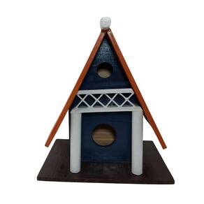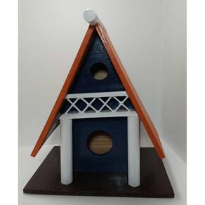 Casa Passarinho produzida artesanalmente em madeira, para decoração de sacadas, jardins e varandas. Características: Madeira pinus tratada para ambiente externo, com pintura resistente a sol e chuva. Medidas comprimento 18cm largura 27cm altura 33cm Cores: Ocre e azul marinho. Por se tratar de produto feito artesanalmente pequenas alterações em cores e tamanhos podem ocorrer Marca: Jw Artesanati Ean: 2960008444184